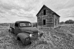 In North Dakota I was with a group of photographers participating in a shooting workshop with Tillman Crane. We had digital shooters like myself and Tillman and a couple of the others were working with large format view cameras up to 8×10. We had a lot of fun and the locations were fascinating. We explored old abandoned houses and wondered what happened to cause these places to be abandoned. Falling down barns, old rusting vehicles and farm machinery provided a wealth of weathered textures. The weather for the week was mostly overcast and on several days we were photographing in light rain and sometimes not so light winds. The last day we were treated to some snow and sleet!