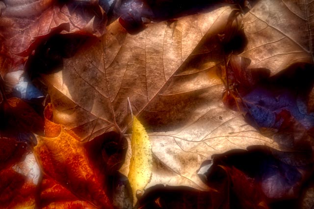 I must also admit being inspired by some work I saw recently by George DeWolfe, who has created a stunning series of images of fallen leaves with his Forest Floor gallery. I have photographed fallen leaves a lot over the years but never really figured out what to do with them. After seeing George’s work, I was motivated to revisit some of my images to see what I could do. I won’t claim to have achieved the artistry that he achieved, and it is not my intention to duplicate his work, but I am enjoying exploring some new techniques.