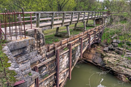 Then less than a half mile downstream from the aqueduct are lock 51 (Mile 122.7) and the ruins of a stone lockhouse.