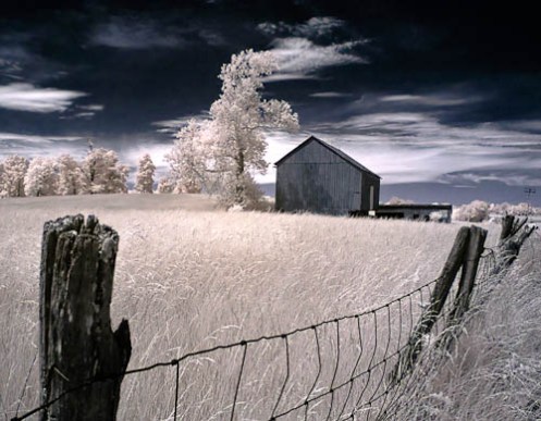 Most of the time, IR images are converted to black and white. But in this case, I was fiddling around with the file in Photoshop and stumbled on this color rendition. The colors are just close enough to real to be plausible, but just different enough to add an element of mystery. Sadly the barn is now gone so I’m glad I was able to get a good photo of it while I could.