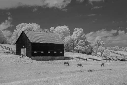 While in Kentucky, I couldn’t fail to take a drive in the country to see the horse farms in the “capitol” of thoroughbred horse country. I took along my Nikon D200IR and captured a few infrared images.