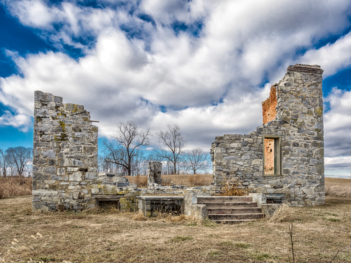 I had visited the small parking lot on the edge of the Schoolhouse Ridge south battlefield that is part of the Harpers Ferry National Historical Park. The stone schoolhouse, visible on the ridge from the parking lot, was used by Confederate troops as a rallying point. The schoolhouse was eventually destroyed by Union artillery. One day a couple of weeks ago, the weather had turned moderate and the sun was poking through so I decided to take the hike up the hill to see what was there up close.