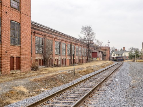 At one time the Interwoven Mill was the largest manufacturer of hosiery in the country. Long closed, it stands strong in the middle of the city of Martinsburg, begging for someone to turn it back to a productive space for living and working. One day a few months ago (when there was still some snow on the ground) I took a walk around the main complex, just thinking about what the possibilities might be.