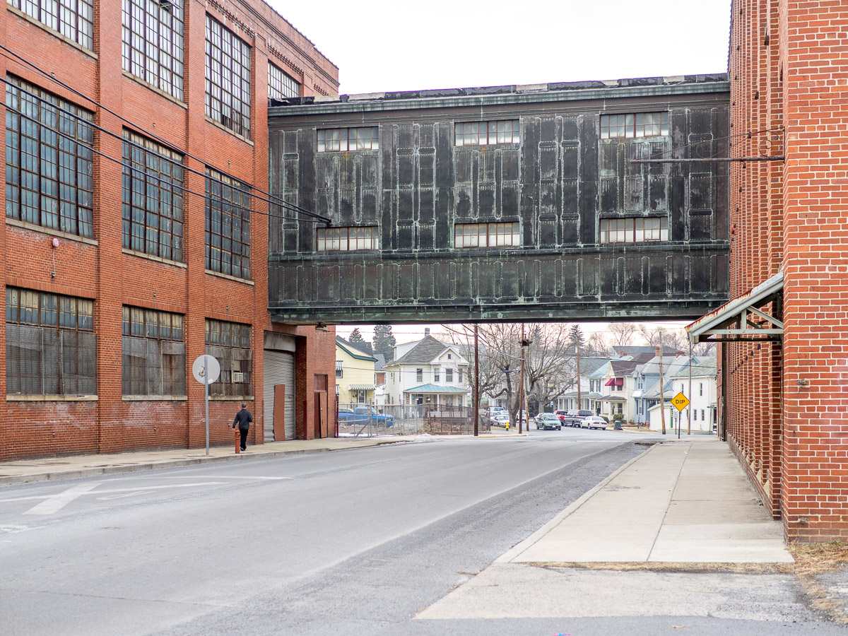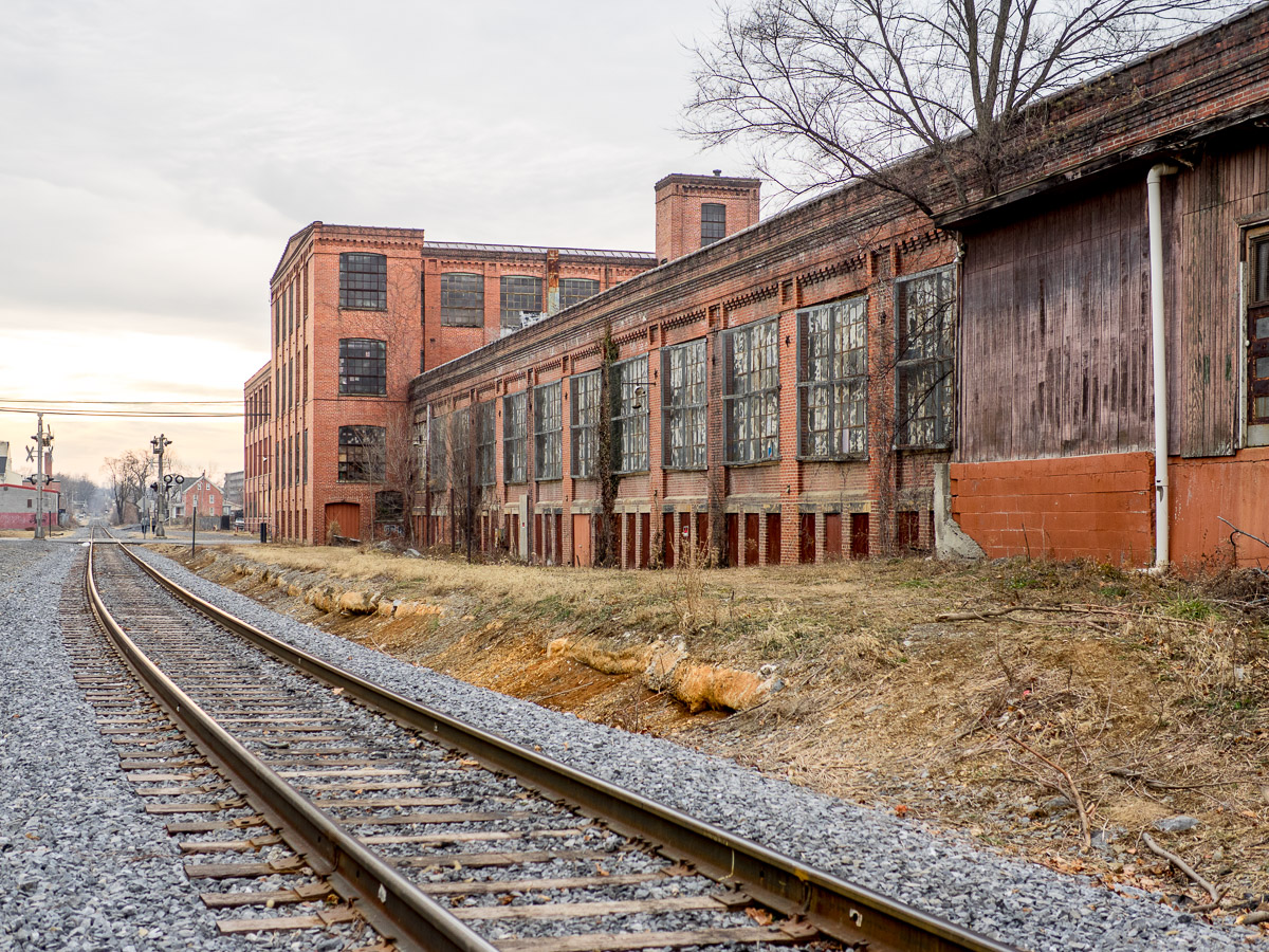 At one time the Interwoven Mill was the largest manufacturer of hosiery in the country. Long closed, it stands strong in the middle of the city of Martinsburg, begging for someone to turn it back to a productive space for living and working. One day a few months ago (when there was still some snow on the ground) I took a walk around the main complex, just thinking about what the possibilities might be.