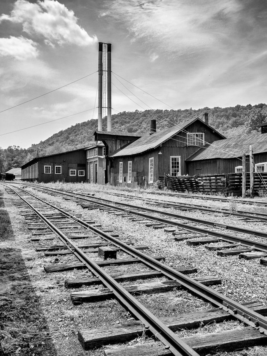In August, 2014 I visited the East Broad Top Railroad facility and took the tour of the roundhouse and maintenance shops. Most of that activity was inside and I wanted to go back and explore the old buildings from the outside.