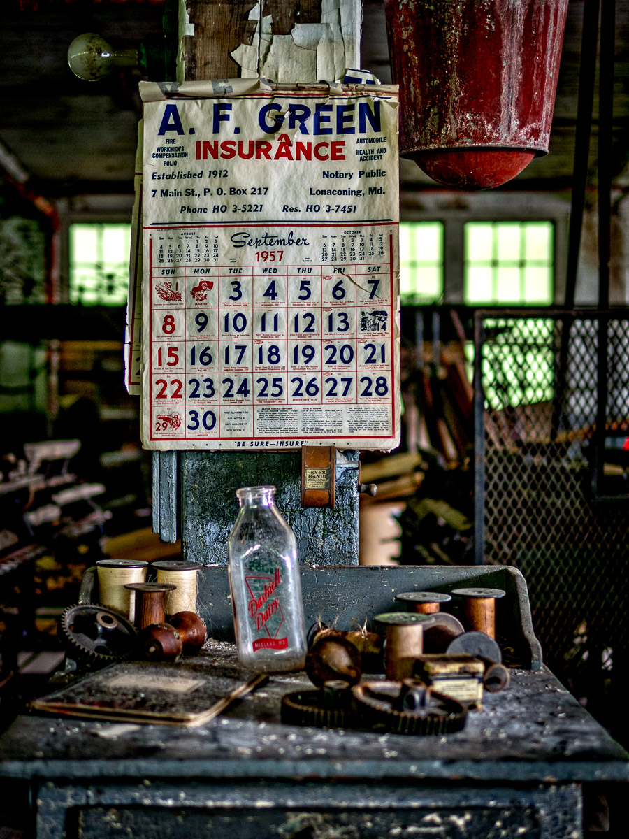 I finally got a chance to visit the Lonaconing Silk Mill. Lonaconing is a small town a little west of Cumberland and south of Frostburg, Maryland. The old silk mill has been closed since 1957 and amazingly, all of the equipment and much of the material is still in place.