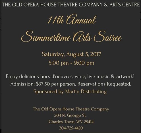After several years absence, I will return to participate in the Old Opera House Summertime Arts Soiree. The event will be held at the Old Opera House in Charles Town on August 5 from 5-9PM to support the programs of the Old Opera House Theatre Company and Arts Centre.