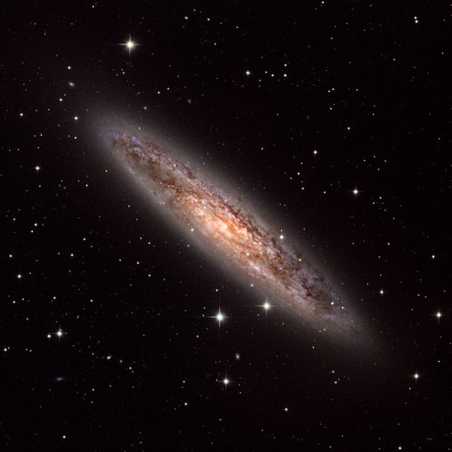 Designated NGC-253, this galaxy is is located at the center of the Sculptor Group in the Sculptor constellation, one of the nearest groups of galaxies to the Milky Way. It is one of the brightest galaxies in the sky even though it has been calculated to be more than 11 million light-years from us. The Sculptor Galaxy can be seen with binoculars and it is considered one of the easiest galaxies to view after the Andromeda Galaxy (M31), although it is 25 degrees south of the equator so it is seen best from the southern hemisphere.
